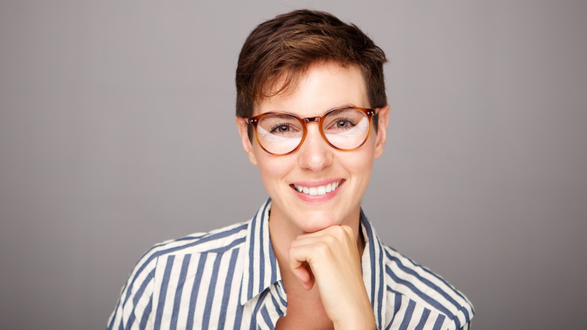 Vorrei concentrare l'attenzione sugli occhiali e penso che un taglio super corto con frangetta sarebbe il modo migliore per farlo. Ho ragione? Cosa potrei fare ai capelli?